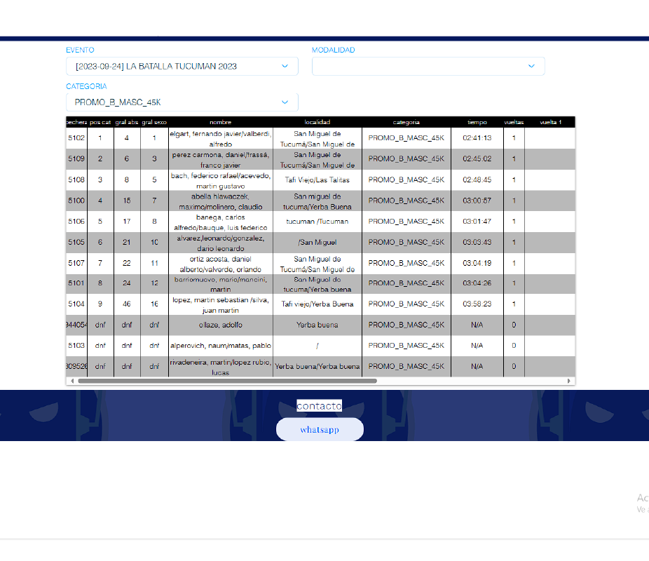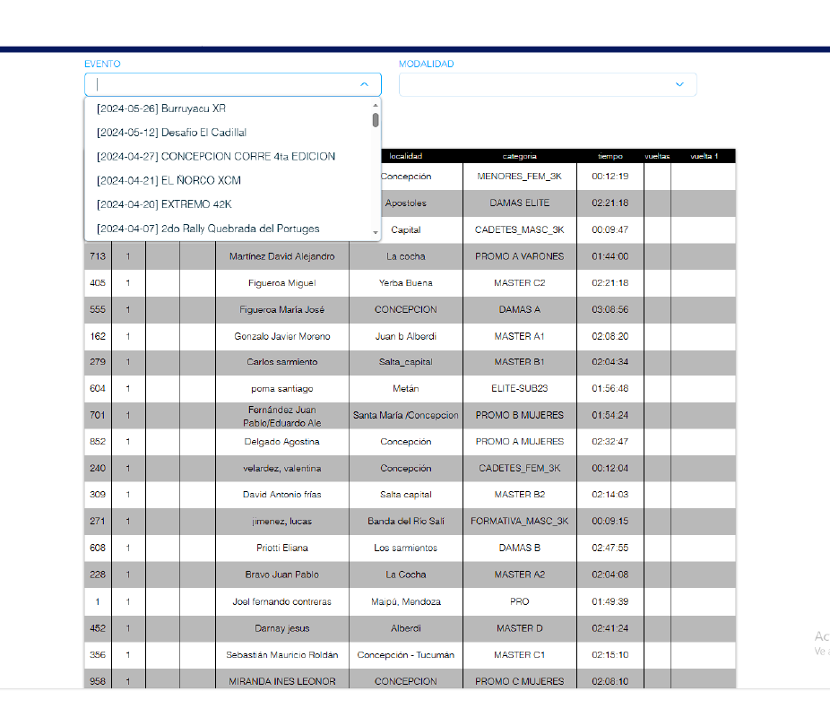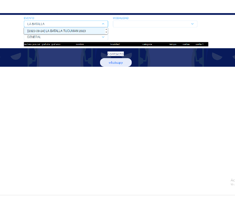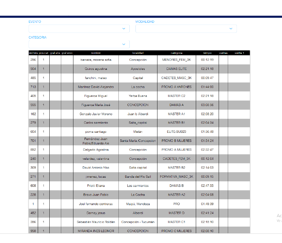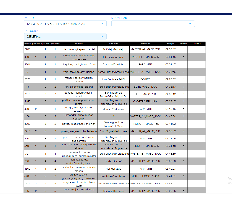 4. Por defecto vas a ver la clasificación «GENERAL». En categoría podés elegir la que estés buscando.